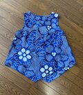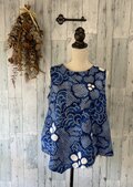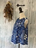 ☆ 浴衣リメイク 青に白い花 有松絞りアシンメトリーノースリーブブラウス ♪