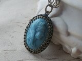 アンティーク くすんだ水色カメオ(約23×17ミリ) クラシカルネックレス