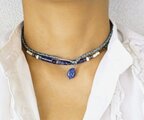 Wラピスとピカソビーズの4wayネックレス/ブレス/アンクレット (#1020)(受注製作)
