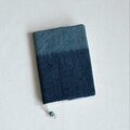 藍でツートーンに染めたリネン生地でブックカバーをつくりました。夜をイメージして染めました。