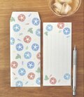 北欧風の朝顔のイラストを柄にして封筒と一筆箋にアレンジしました!