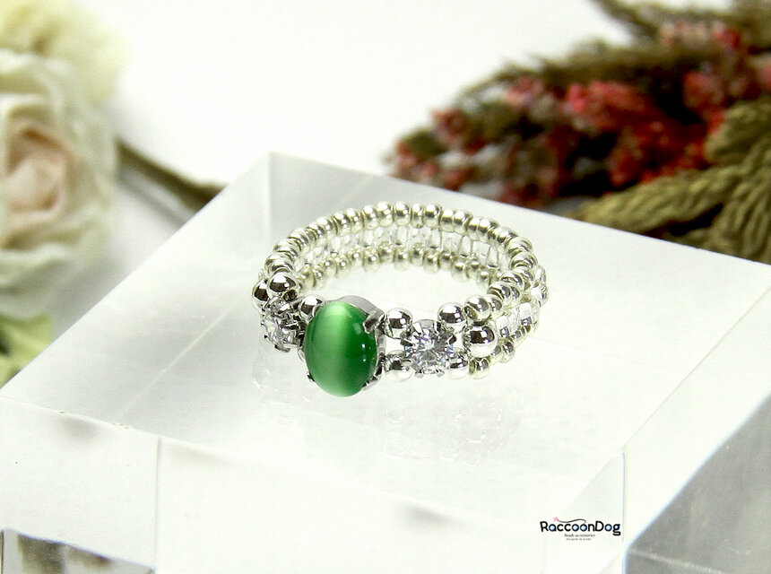 miniキャッツアイエメラルドグリーンの瞳【キャッツアイ/ジルコニア ビーズリング】《ビーズアクセサリー》