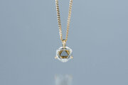 自然の神秘をそのまま楽しめるよう、繊細なイエローゴールドの枠とチェーンを合わせました。