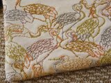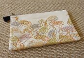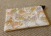 相良刺繍で鶴を描いたユニークな帯から仕立てたポーチです。