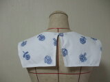 白地×青色北欧風柄刺繡入り スクエアーカラーの付け衿 前後どちらでもOK! 綿100%