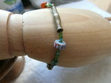 チェーンはアジア渡りのシードビーズ グリーンに水色のビーズを散らして