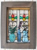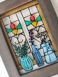 ガラス絵の具で薄いアクリルにハーブとステンドグラスの窓の絵を描きました^^蕾の色違いでハーブオレンジもあります。