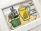 ガラス絵の具で薄いアクリルにレモネードとカップケーキの絵を描きました^^