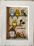 ガラス絵の具で薄いアクリルにインコの絵を描きました^^ 色違いでブラウン系も♪