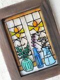ガラス絵の具で薄いアクリルにハーブとステンドグラスの窓の絵を描きました^^蕾の色違いで赤もありますよ!