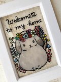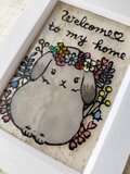 ガラス絵の具で薄いアクリルにロップイヤーの絵を描きました^^ フレームはホワイト系です。真っ白ではありません。