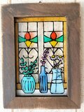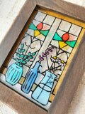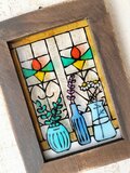 ガラス絵の具で薄いアクリルにハーブとステンドグラスの窓の絵を描きました^^蕾の色違いでオレンジ系も♪