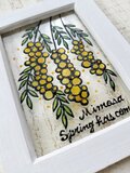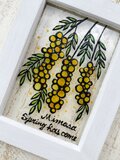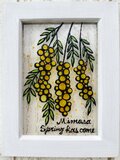 ガラス絵の具で薄いアクリルにミモザの絵を描きました^^