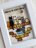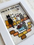 ガラス絵の具で薄いアクリルに猫の背中とレンガの壁の絵を描きました^^ 犬バージョンも♪フレームはホワイト系です。真っ白ではありません。
