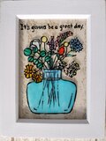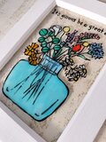 ガラス絵の具で薄いアクリルにナチュラル花瓶の絵を描きました^^ フレームはホワイト系です。真っ白ではありません。