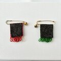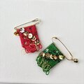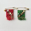 どちらも下の方に金糸と刺繍糸のループになっております。尖ったところやどこかに引っかからないように着脱の際などお取り扱いにご注意いただきたいと思います。