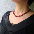 形の不揃いなサンゴをメインにガーネットを合わせ、ダークなカラーにまとめました。
