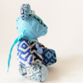 テディベアのすべてのパーツを、こぎん刺しの生地を使って作りました。