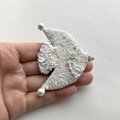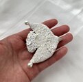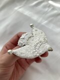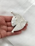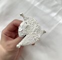 サイトの写真よりなお美しいブローチが届きました!白なのに光でさまざまな色が差し、季節を問わずどんな服にも映えそうです。 包装もとても丁寧で、作品への愛と購入者への心遣いが溢れており、とても幸せな気持ちになりました。 素敵な作品をありがとうございました!きっとまたご縁がつながる気がします。