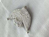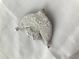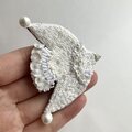 他の鳥ブローチにはない、全体にやわらかな乳白色ビーズを散りばめています。