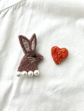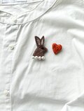 ラブリーラビット" 茶色うさぎとオレンジハートセットブローチ