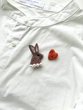 かわいらしくチョコンと衣服やバックにいてくれる、目が合うとくすっと笑顔がうまれるような愛されるうさぎさんになるようなデザインにしました。
