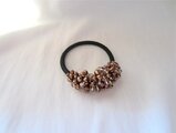 茶系のガラスビーズをレース糸で編みつけたヘアゴムです。