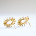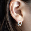 テーパーカットダイヤモンドを放射状に配したスタッドタイプのピアスです。