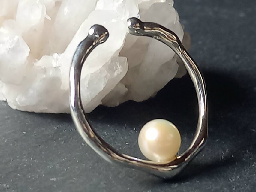 穏やかな波にあこやパールをあわせたイヤーカフ。