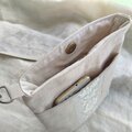 チュールレースに丁寧にふっくらと手刺繍が施されたアンティークレースをエクリュリネンに合わせたショルダーバッグです。