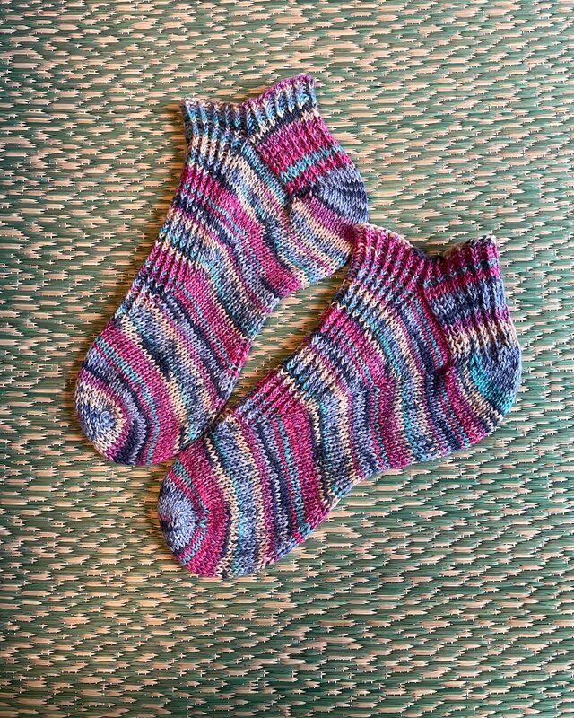 Pennneというパターンで制作しました。デザイナーさんに許可いただけて販売できることになりました。フィット感のある履き心地のいい靴下です。
