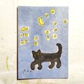 猫のイラスト|原画「good night」※木製額縁入り インテリアアート
