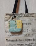 南仏のような明るいイメージのグリーンとイエローのつる草柄のオックス地の小さな小さなトートバッグです。底はグリーンのジャガード地です。入り口はグリーンのギンガムチェックで巾着になっています。裏地は生成りのシーチング地を使用しています。