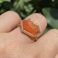 カーネリアン 6角形 立体チェックカット シルバーSV925リング