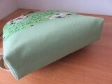 マーガレット柄生地にバッグ用のしっかりした接着芯を貼って、口元にも口元芯を貼っています。