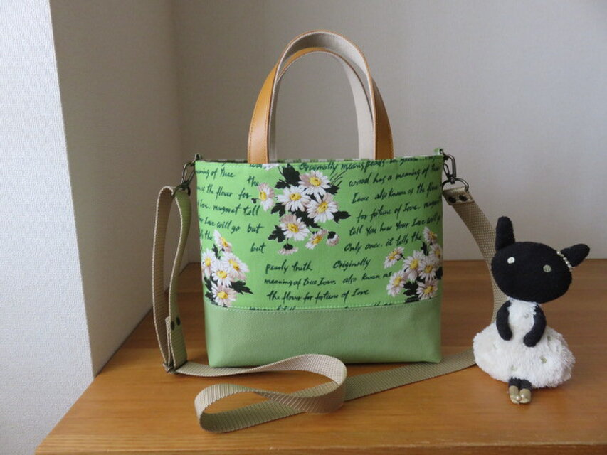 マーガレット柄生地と8号帆布で2WAYトートバッグを作りました。