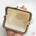 スクエアタイプは四角い小物の収納に適しており、10.5cm口金はカード入れにピッタリです。