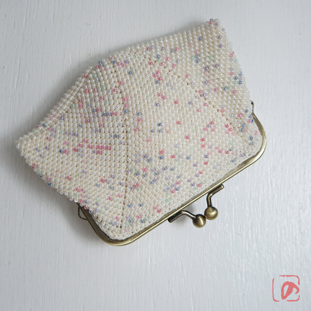 2mmのシードビーズをひとつぶづつ全面に編み込んだ、上質ながま口です。