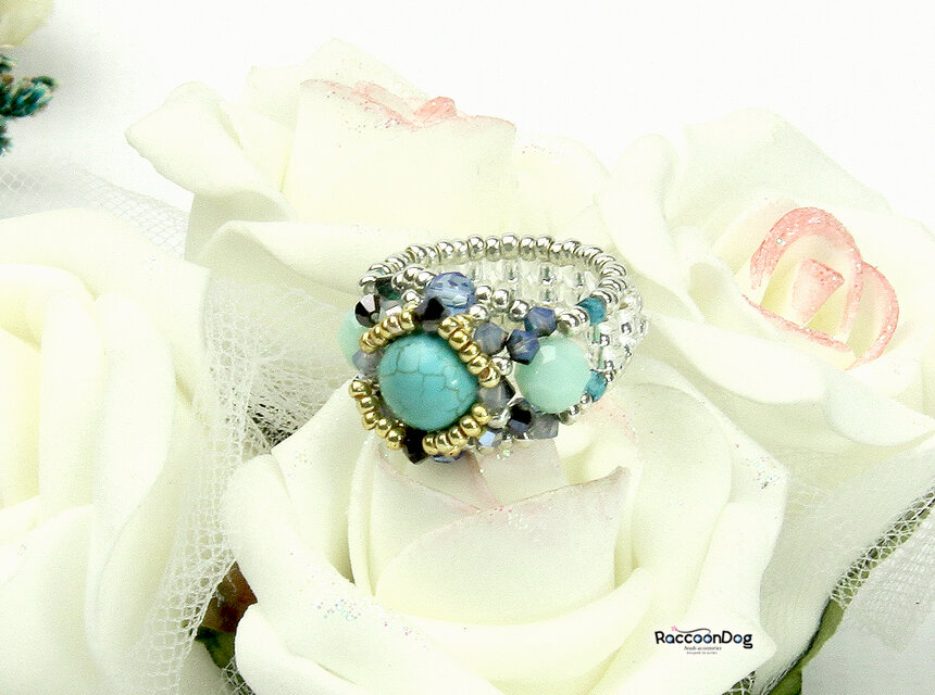 ビーズ,リング,コスチュームジュエリー,ビーズアクセサリー,ビーズリング,ビーズ指輪,スワロ,天然石,ターコイズ