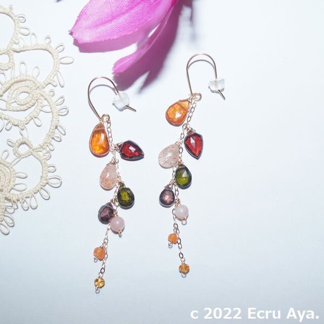 #Ecru #天然石 #ピアス #ヘソナイト #ガーネット #マイカサンストーン #カーネリアン #シトリン #秋 #Ecru_新作