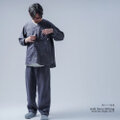 Lサイズは着丈がお尻が4cm出るくらい、袖丈は中指の詰めが出るくらい、厚手のものが重ね着できるよりもっとゆったりしています。パンツは裸足で穿いて床についてしまいます。3cmくらい折るとすれすれな長さです。