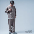 少しゆったり目がいいのでMサイズを選びます。上下ともに幅は、ゆとりがあります。袖丈は、手の甲が隠れるくらいで、着丈は、お尻が隠れるくらいでした。パンツの裾が少し長く感じたのでロールアップするか裾上げすると丁度いいかなと思います。気持ちのいいセットアップです。
