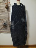 古布リメイク ミニフード刺し子ジャンバースカートワンピース 襤褸 藍染 時々堂 ゆったりサイズ 着物リメイク ボロ