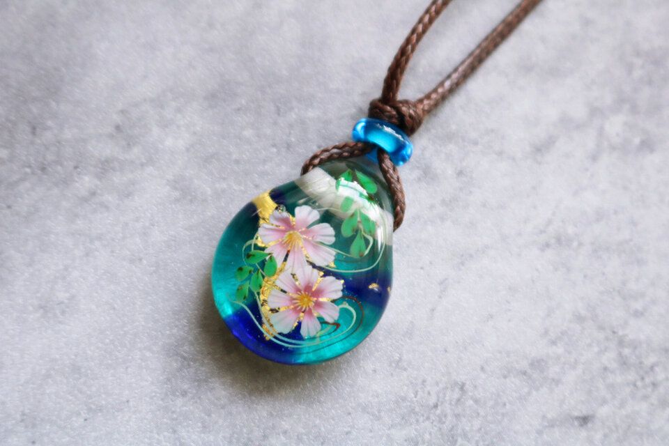 バーナーワークの技法で制作した小さなガラスペンダントです。