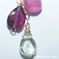 ダークカラーのトルマリンを2個、その下にシトリン、ピンク系の濃淡のトルマリンの下にモザンビーク産のガーネット、一番市単位淡いグリーン系のトルマリンを下げました。