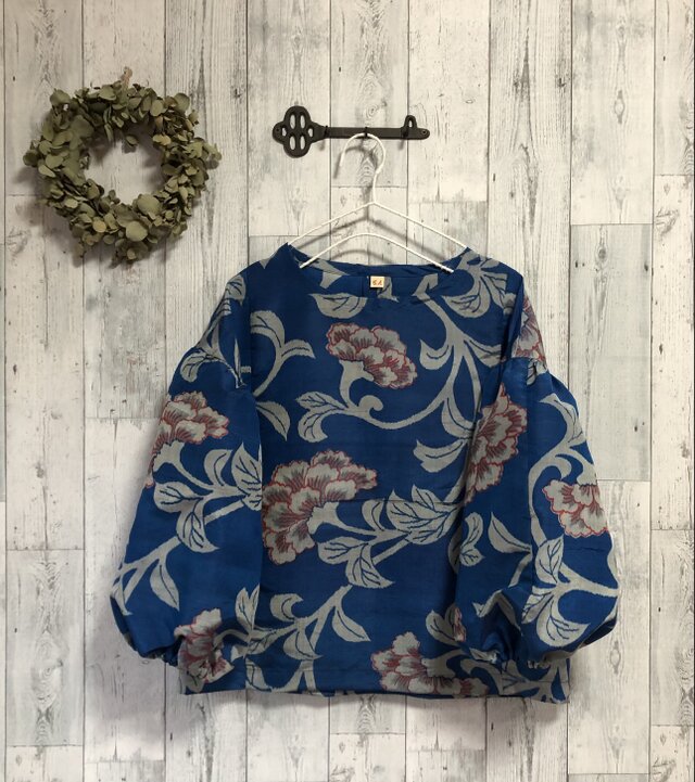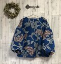 ☆ 銘仙花柄 青緑 ふんわりパフ袖ブラウス♪