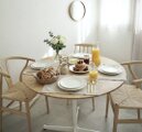 そして、天板の丸という形状は空間に柔らかさを与え、動線も確保しやすいという利点もございます。