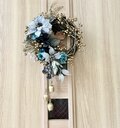 花材:アーティフィシャルフラワーポインセチア・紫陽花・サンキライ・シダー・ヒイラギ・ローズ・ベルなど