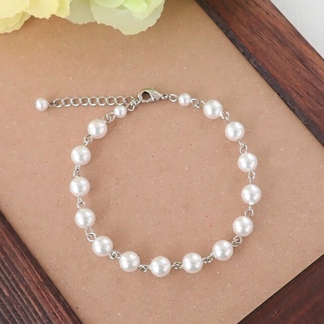 6㎜のパールを9ピンでつないだシンプルなデザインのブレスレットです。
