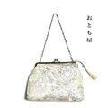 西陣織 プラチナ箔 シルバー クラッチバッグ パーティーバッグ 和装バッグ 結婚式 着物 2way がま口